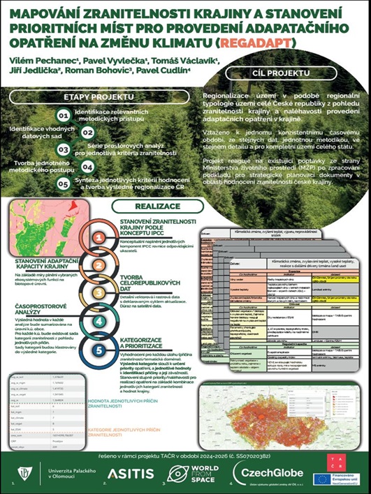 Projekt TAČR č. SS07020382 s názvem Mapování regionálního rozdělení České republiky z pohledu naléhavosti provedení adaptačních opatření na změnu klimatu (RegAdapt) má za cíl vytvoření regionalizace území v podobě regionální typologie území celé České republiky z pohledu zranitelnosti krajiny a naléhavosti provedení adaptačních opatření v krajině.